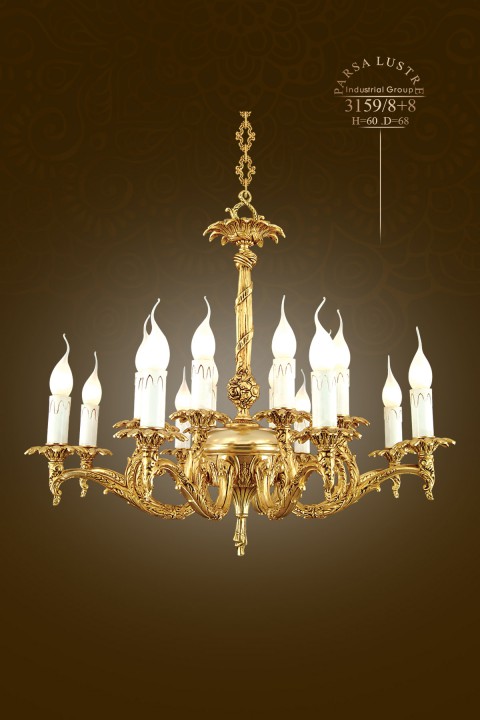 Đèn chùm pha lê 3159/8+8 có 8 bóng đèn. Kết hợp tinh tế với chóa thủy tinh của Iran