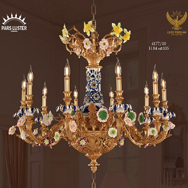 Đèn chùm mạ vàng 999.9k, được chế tác thủ công và được nhập khẩu nguyên chiếc.