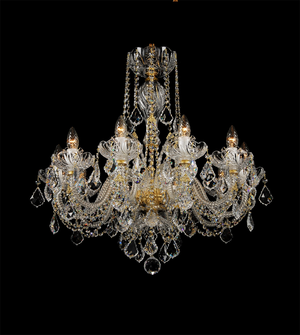 Mẫu đèn luxus được sử dụng các phụ kiện làm từ pha lê Bohemia thổi thủ công và hạt dây trang trí Swarovski.