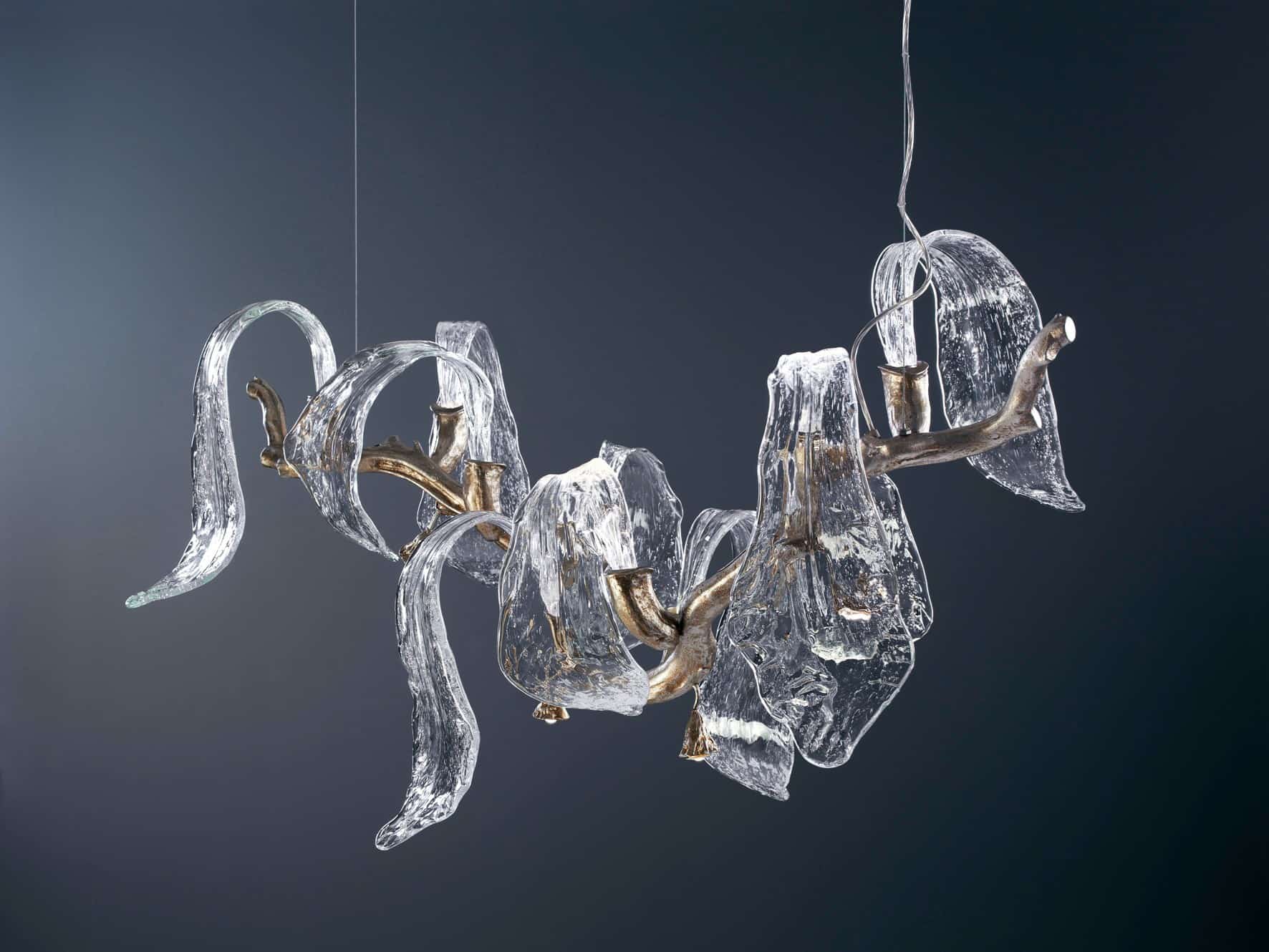 Chiếc đèn tinh tế với từng viên pha lê đều được thổi thủ công dưới sự sáng tạo, khéo léo và tỉ mỉ của người thợ. Đây là một tác phẩm nghệ thuật lấy cảm hứng từ thiên nhiên, độc đáo và tinh xảo, nhưng lại phù hợp với mọi không gian sống từ phong cách cổ điển đến hiện đại.