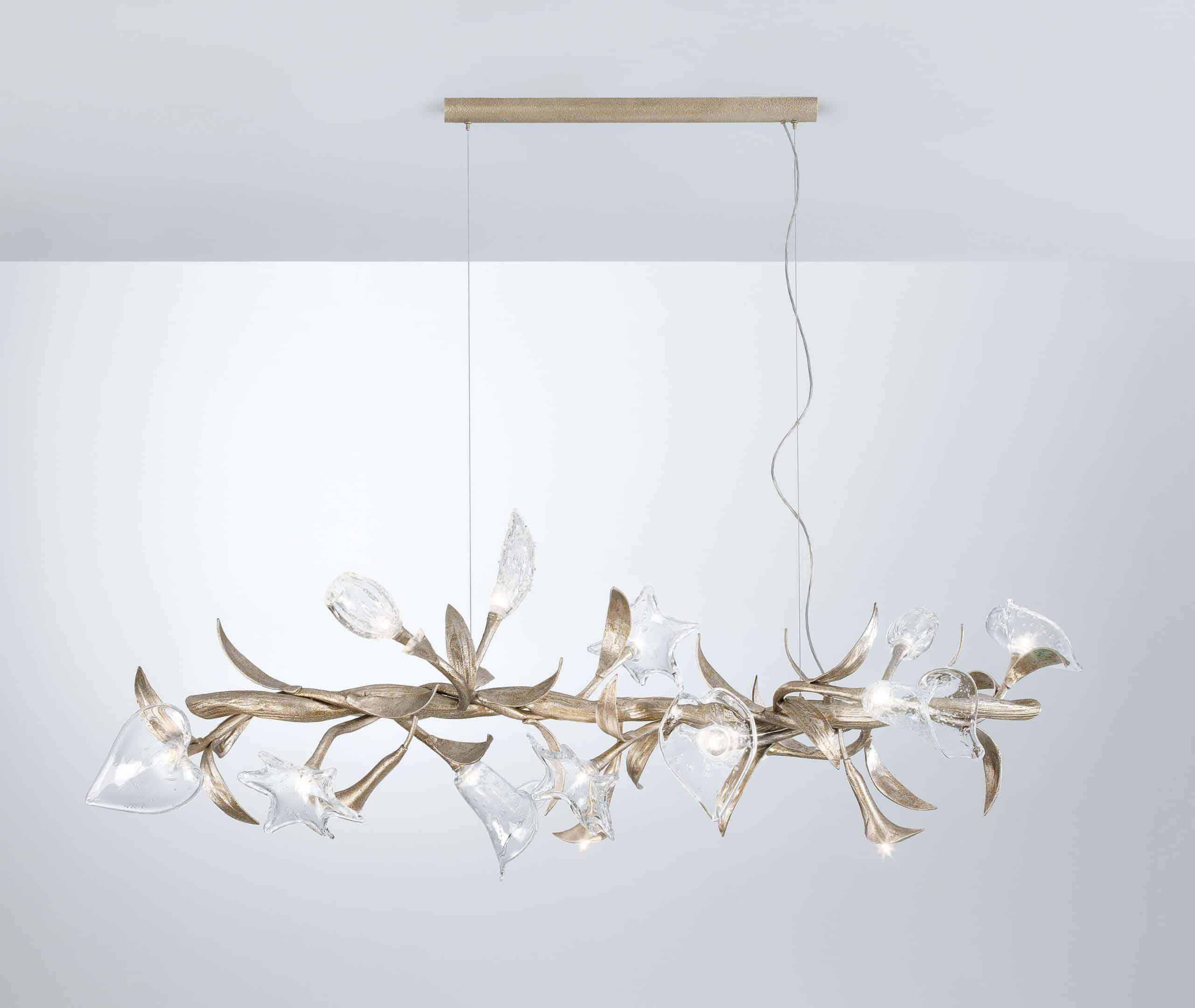 Chiếc đèn tinh tế với từng viên pha lê đều được thổi thủ công dưới sự sáng tạo, khéo léo và tỉ mỉ của người thợ. Đây là một tác phẩm nghệ thuật lấy cảm hứng từ thiên nhiên, độc đáo và tinh xảo, nhưng lại phù hợp với mọi không gian sống từ phong cách cổ điển đến hiện đại.